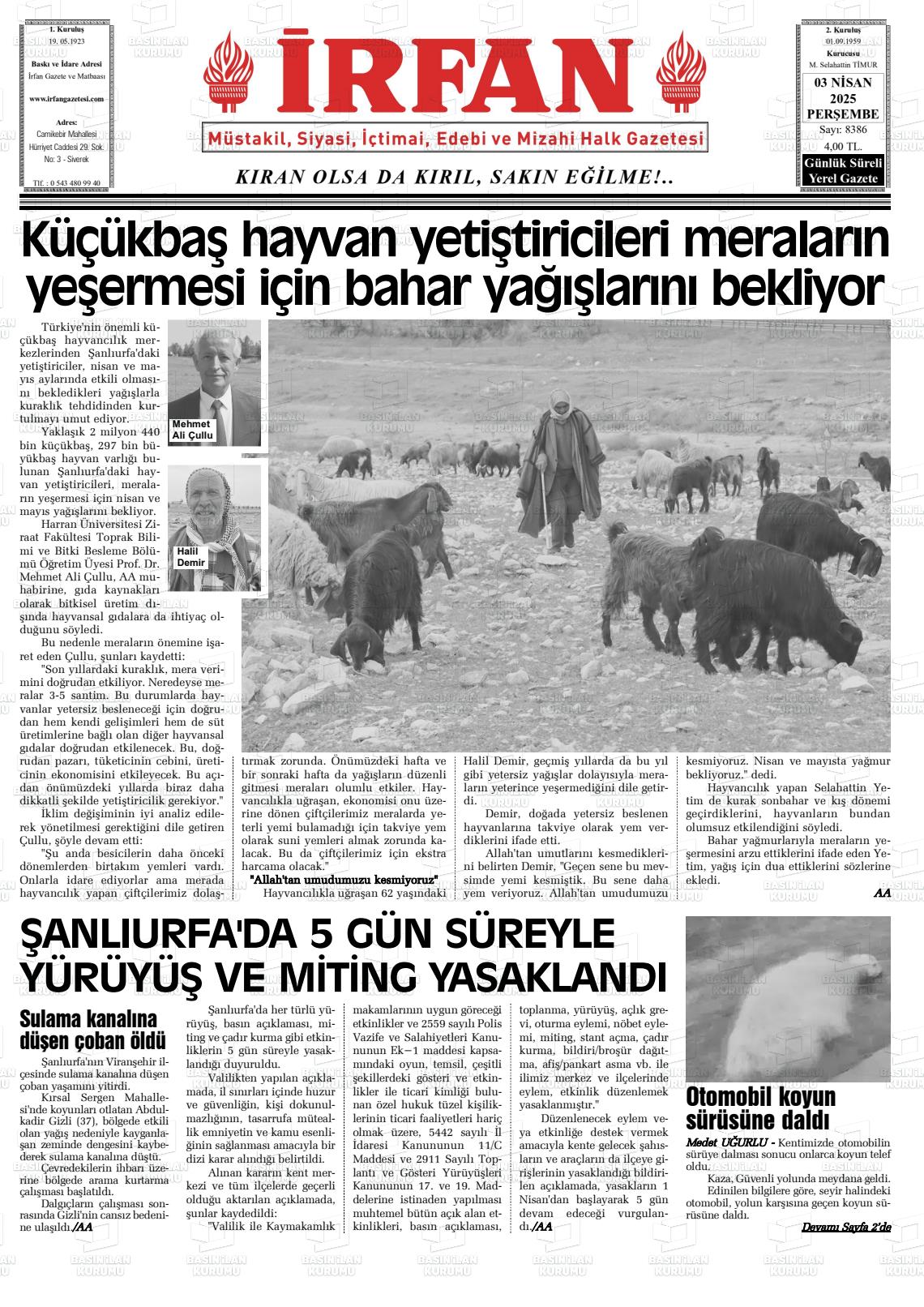 Şanlıurfa Yerel Gazeteleri 17 Nisan 2026, Cuma Günü Manşeti