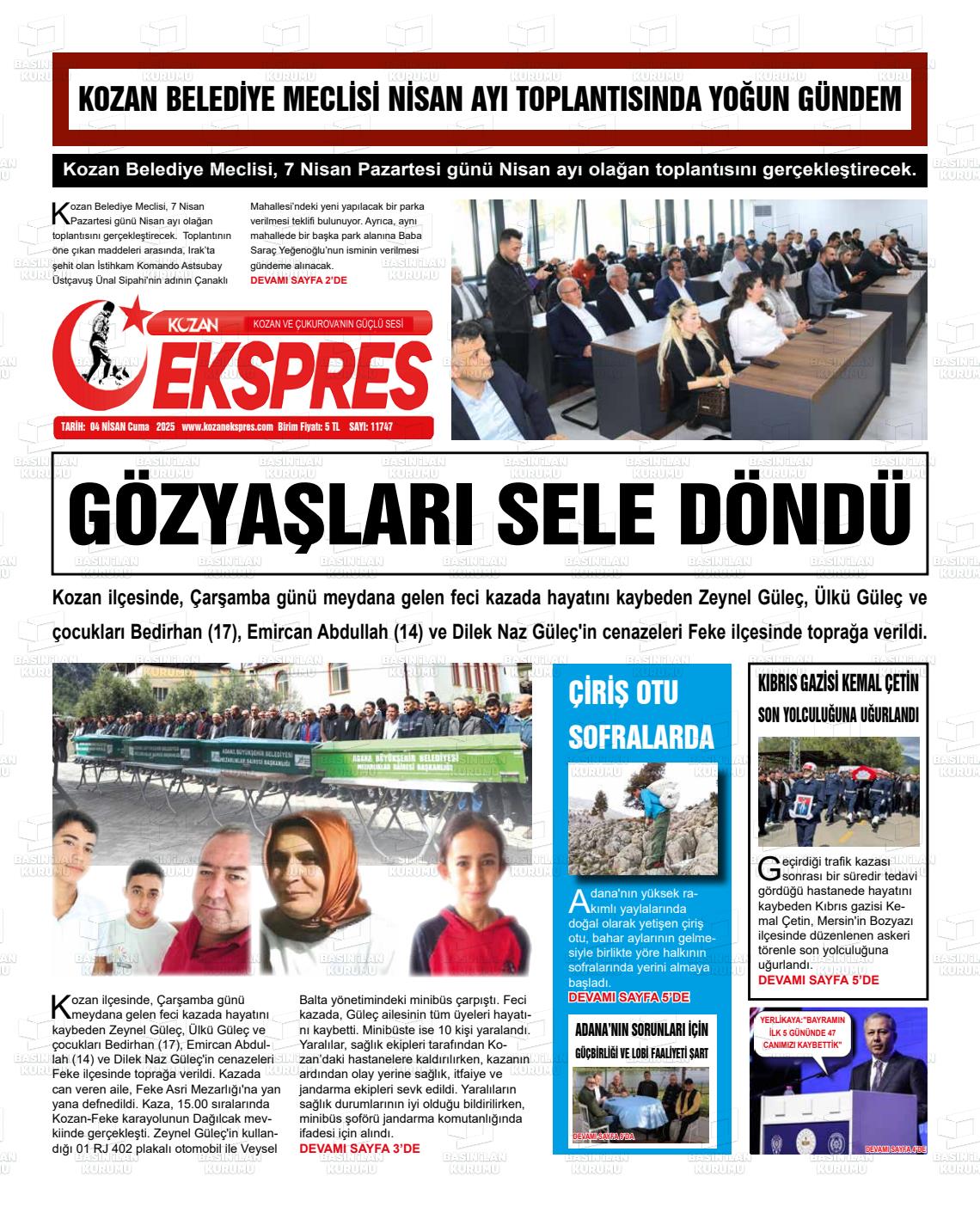 Adana Yerel Gazeteleri 17 Nisan 2026, Cuma Günü Manşeti