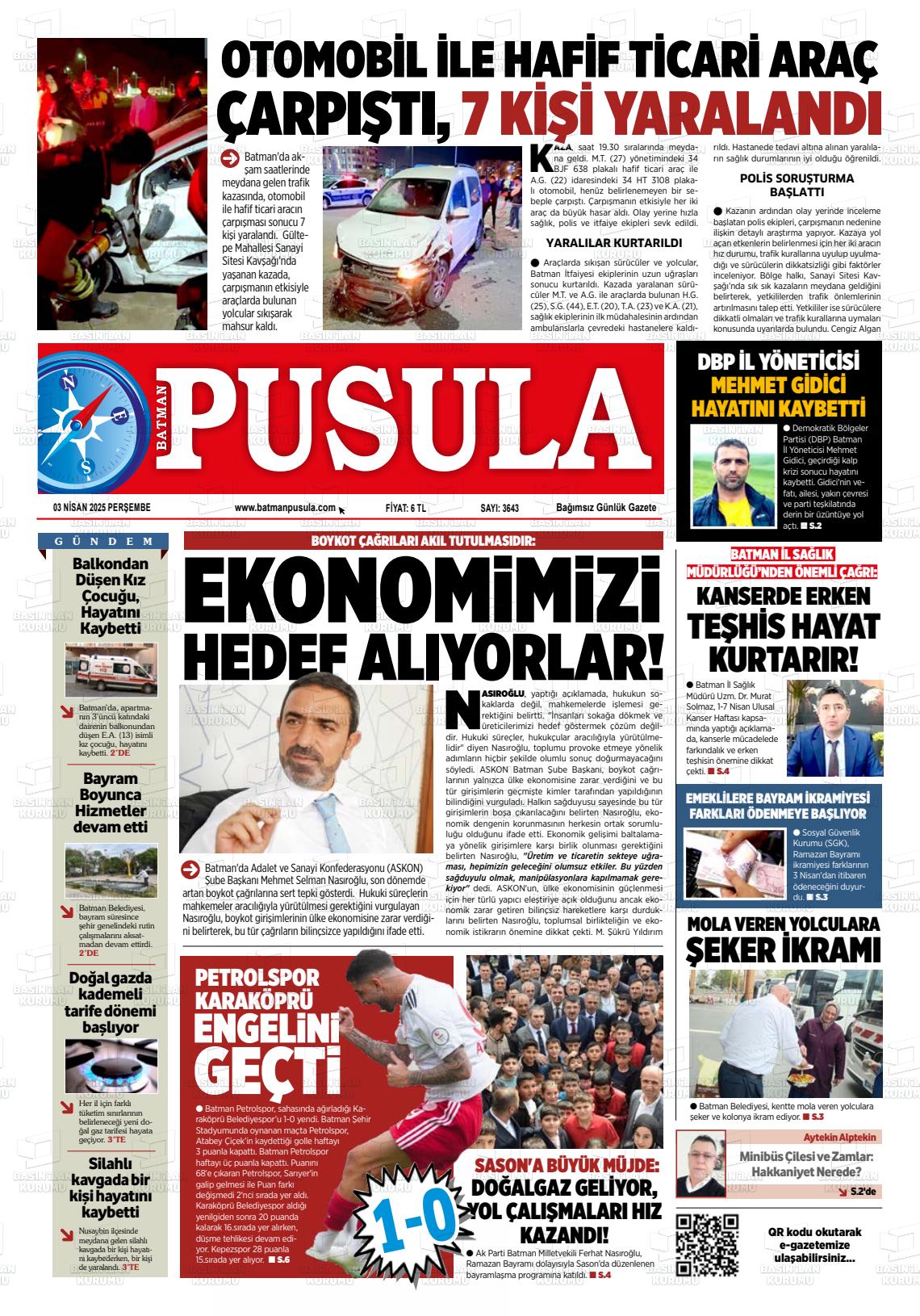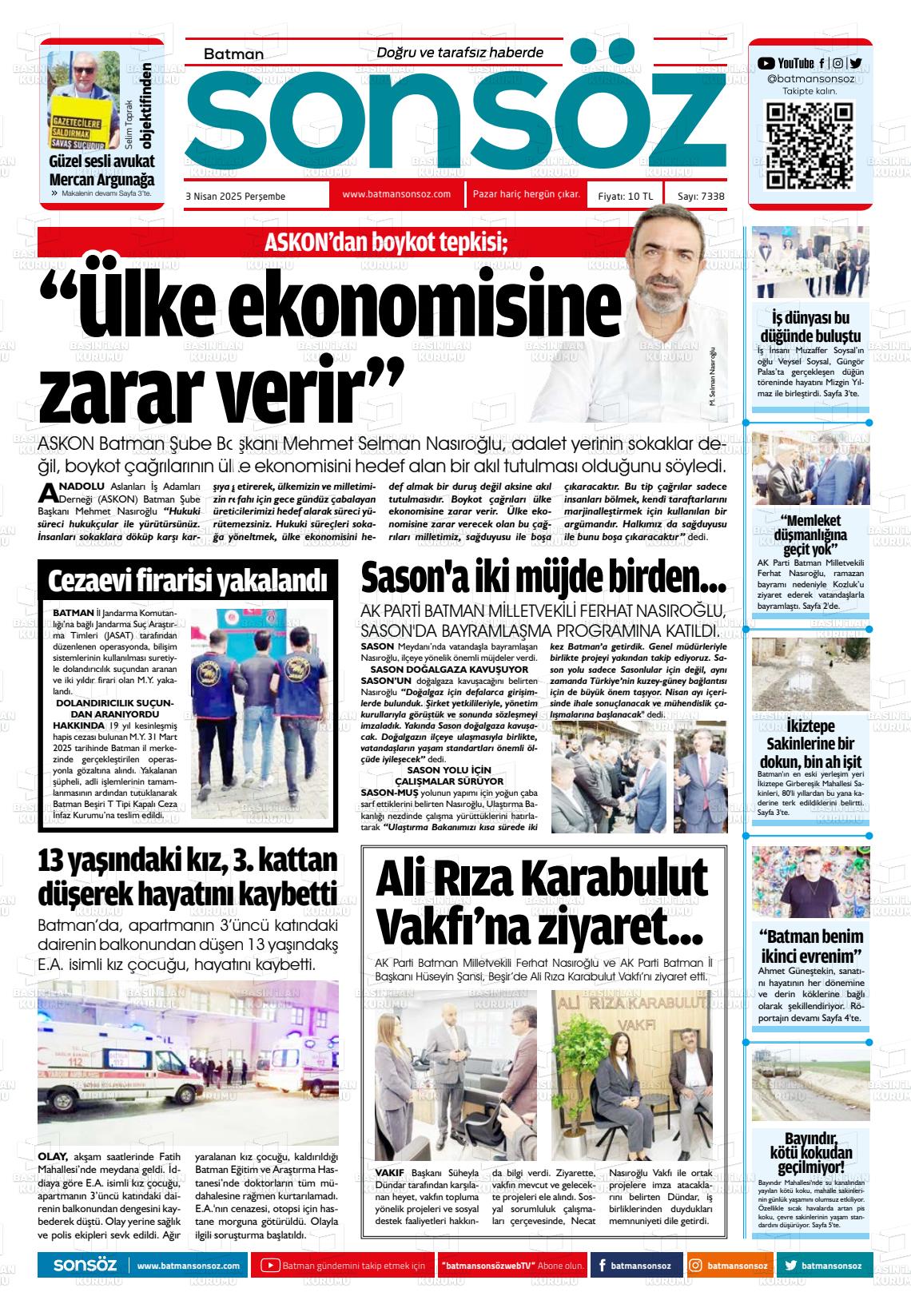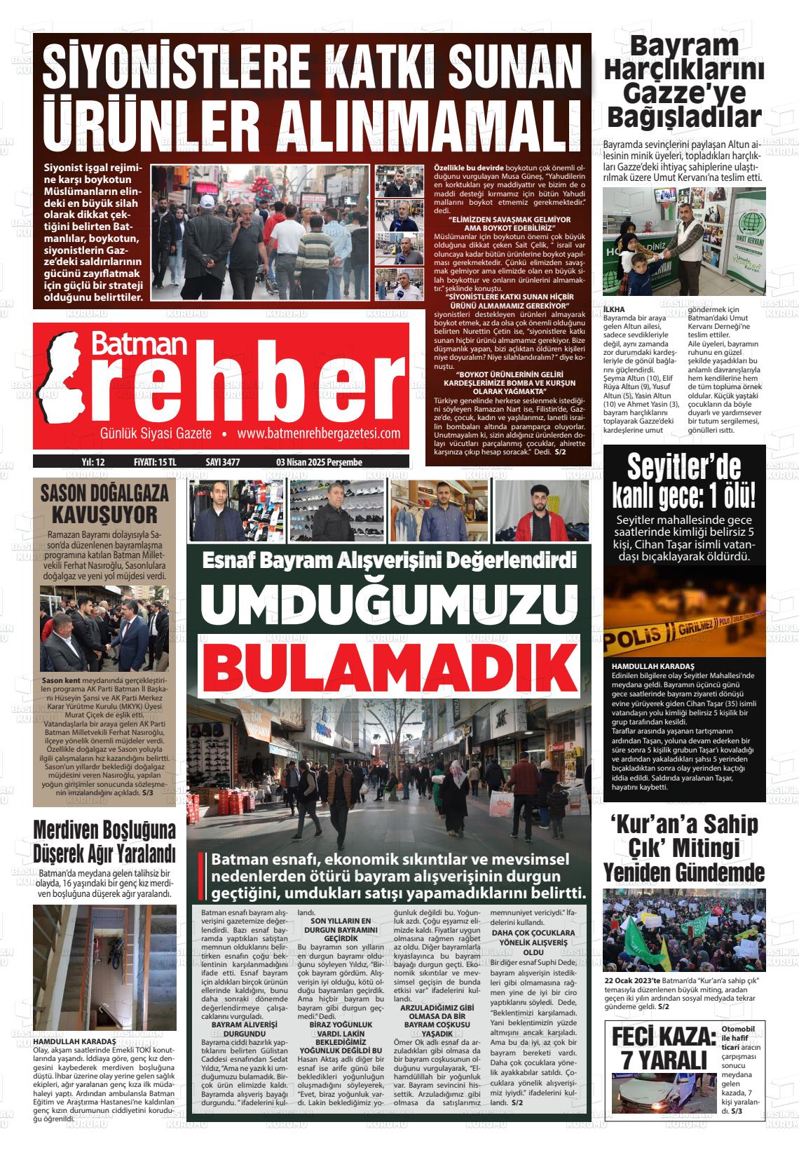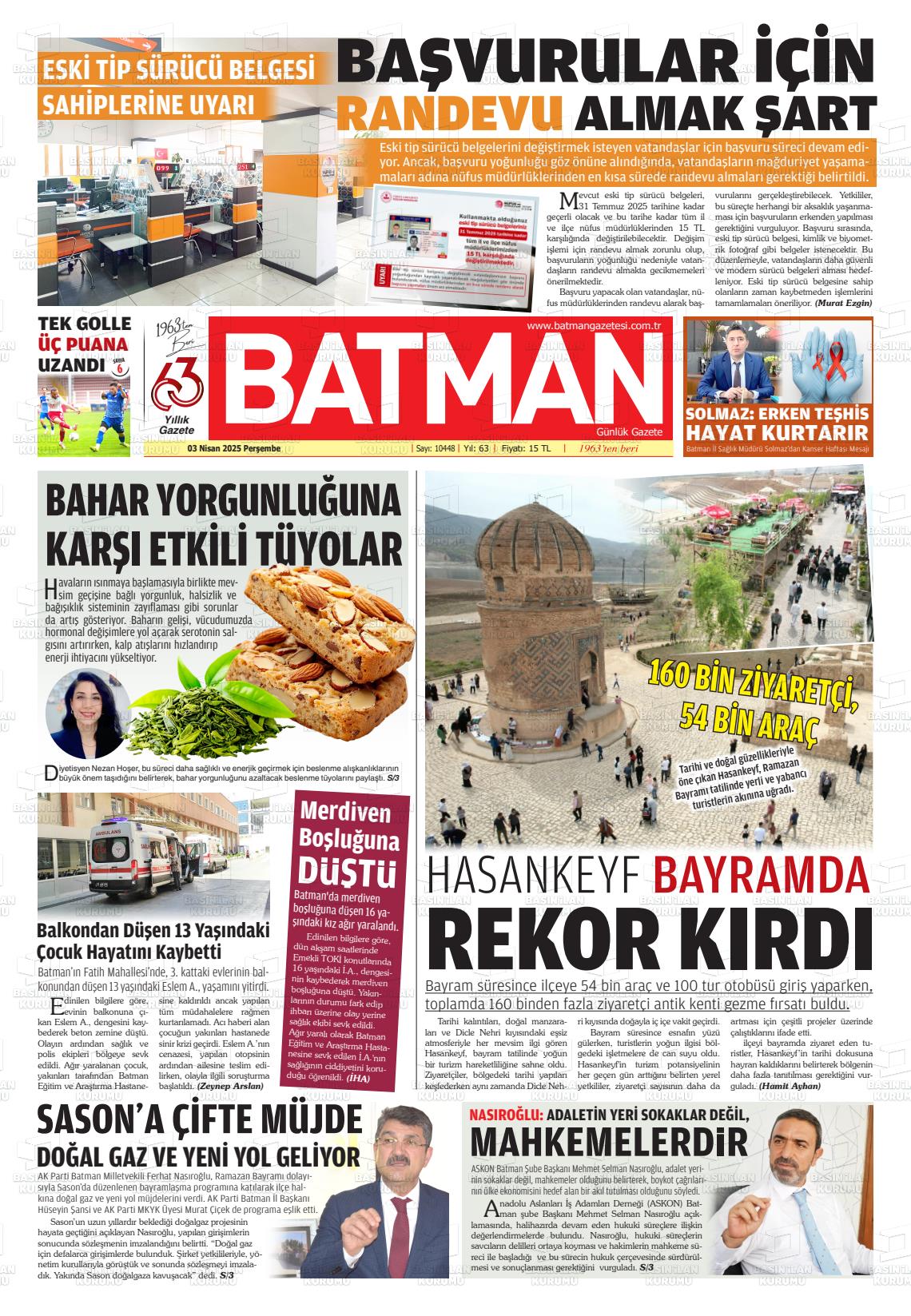 Batman Yerel Gazeteleri 03 Mart 2026, Salı Günü Manşeti
