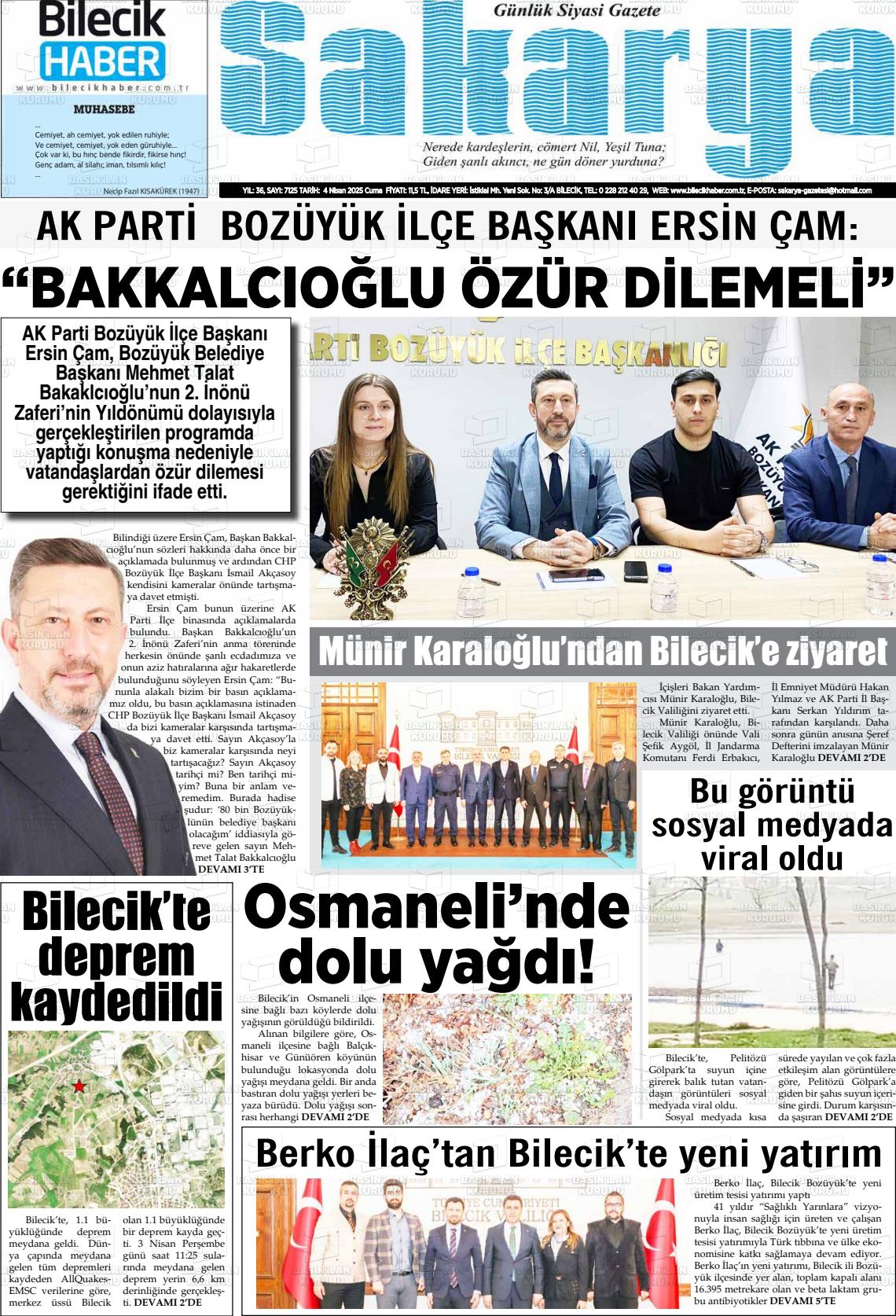 Bİlecİk Yerel Gazeteleri 03 Mart 2026, Salı Günü Manşeti