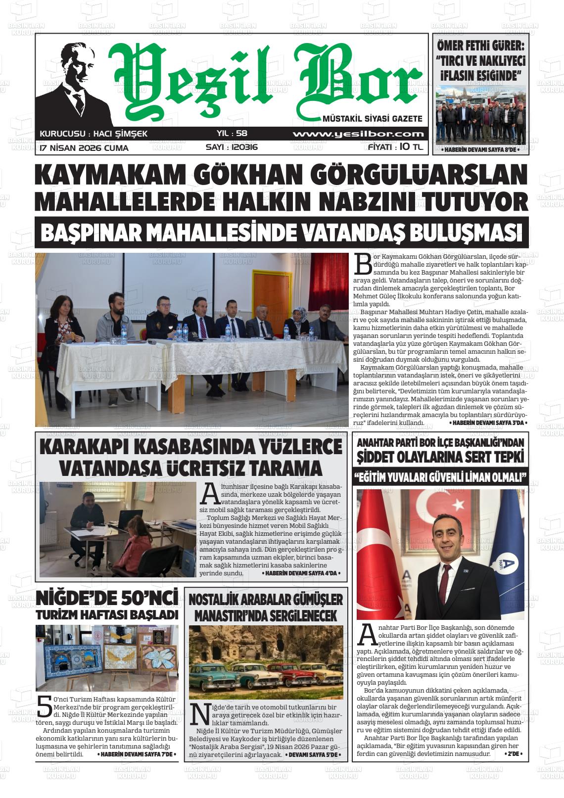 Nİğde Yerel Gazeteleri 17 Nisan 2026, Cuma Günü Manşeti