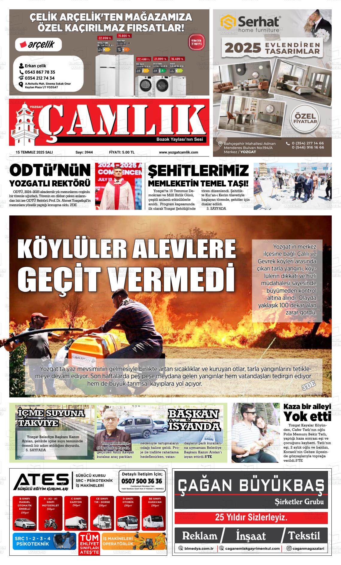 Yozgat Yerel Gazeteleri 03 Mart 2026, Salı Günü Manşeti
